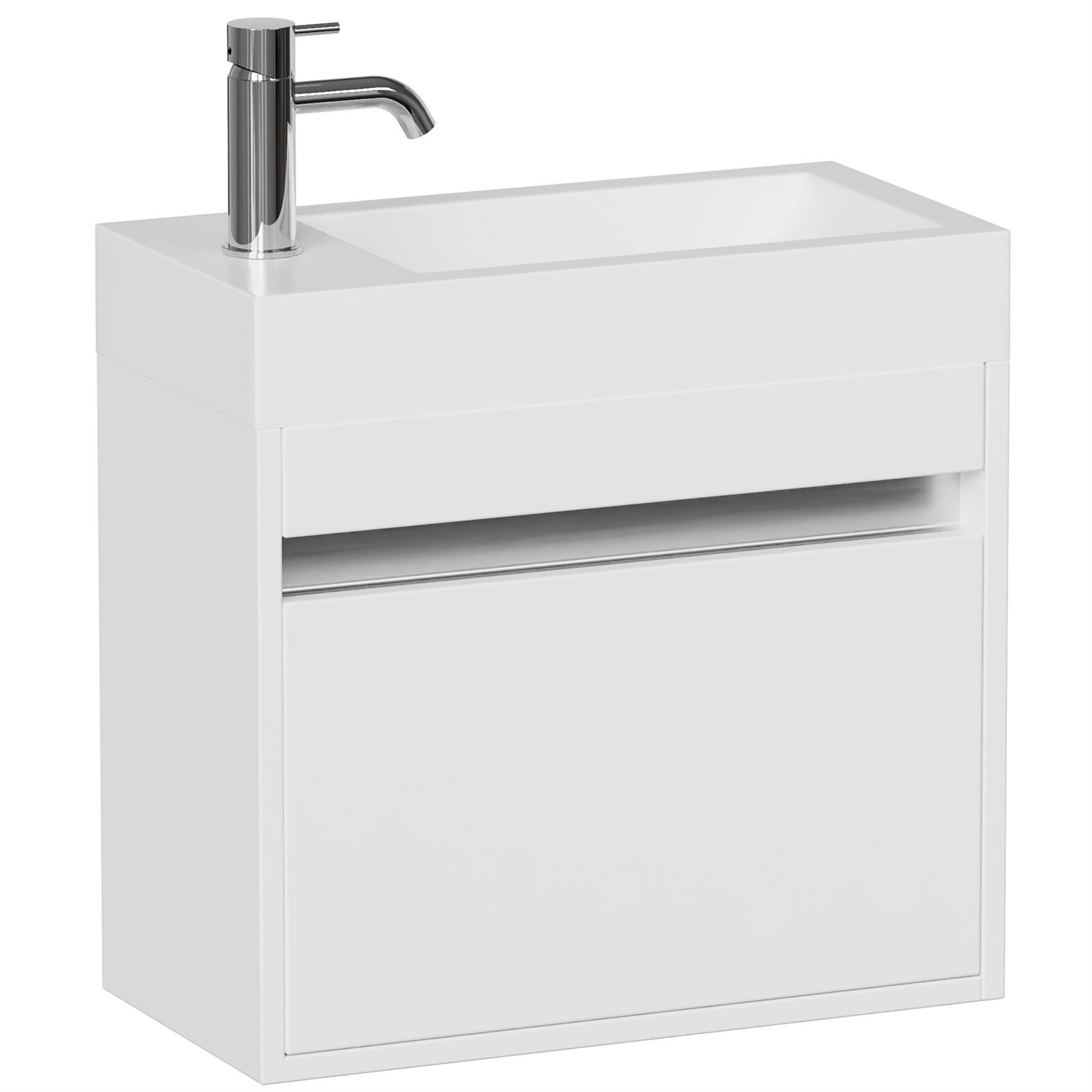 LeVivi Capri 500mm Slim Wall-Hung Vanity in White. Modern design, soft-close door, 10-year top warranty. Made in New Zealand.