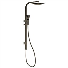 LeVivi Elba Shower System in Gunmetal: Modern design, dual function, 800mm slide, 4-star WELS, 10-year warranty. Perfect for contemporary bathrooms.