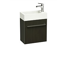 LeVivi Leeds Wall-Hung Vanity: Compact 400mm design, charred oak finish, reversible top, soft-close door. Ideal for small spaces. 10-year warranty.