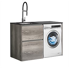 LeVivi Laundry Station: 1300mm, Elm/Charcoal, waterproof, engineered stone top, undermount sink, 5-year warranty. Exclusive to Plumbing World.