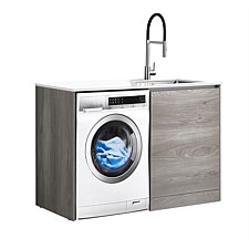 LeVivi Laundry Station: 1300mm Elm Cabinet, White Top. Waterproof, 5-year warranty, stone top, undermount sink, predrilled taphole. Exclusive to Plumbing World.
