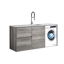 LeVivi Laundry Station 1300mm RH Door LH Drawers White Top Elm Cabinet