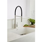 This tap looks amazing and functions so well. The hose has a switch to choose a spray function that is so handy when rinsing vegetables etc and food out of the sink. One of the best and favourite items we purchased in our kitchen renovation.