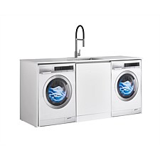 LeVivi Laundry Station: 1930mm, white top & cabinet, waterproof, 5-year warranty, stone top, undermount sink, predrilled taphole. Exclusive to Plumbing World.