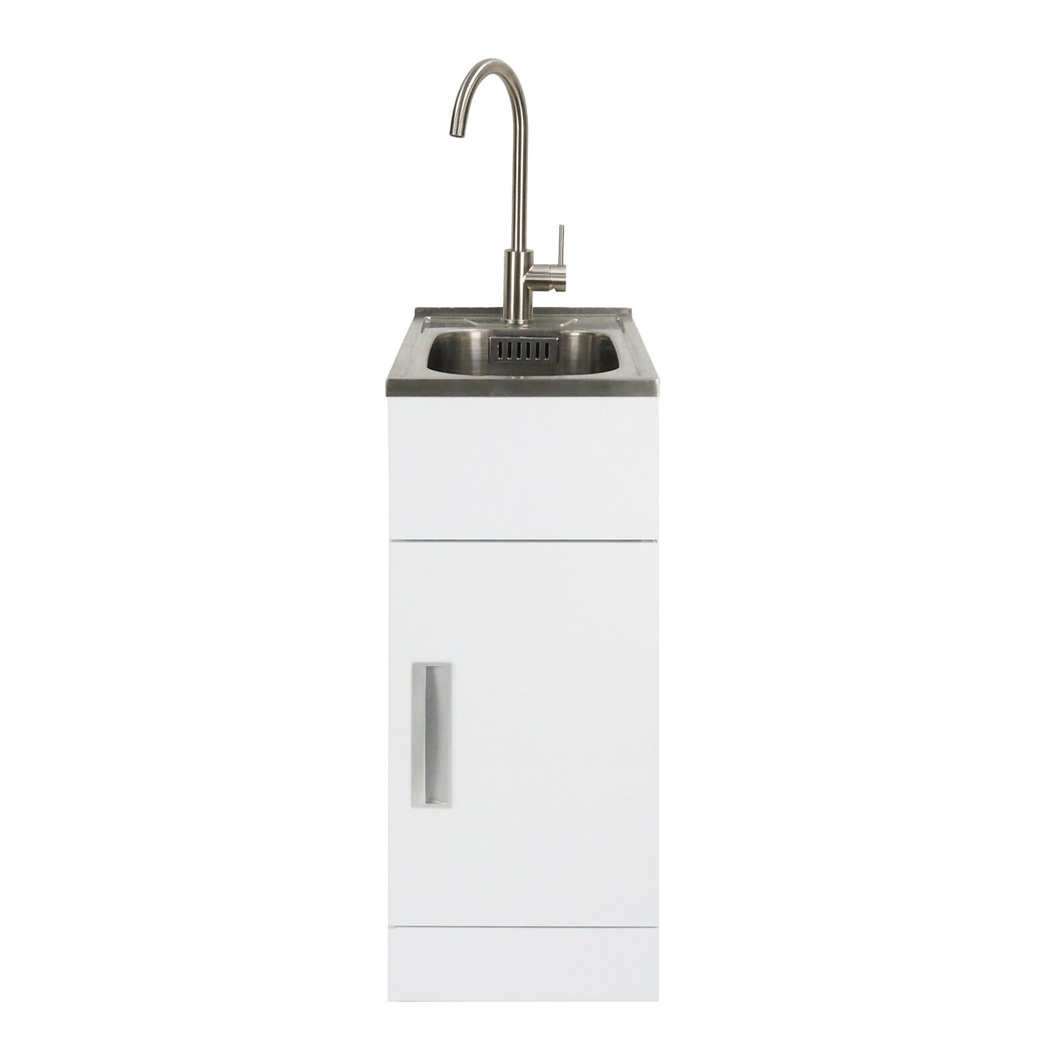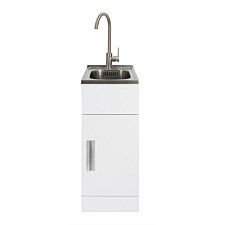 LeVivi Hub Tub 360 Slim Door Laundry Tub White with Brushed Stainless Steel Gooseneck Mixer