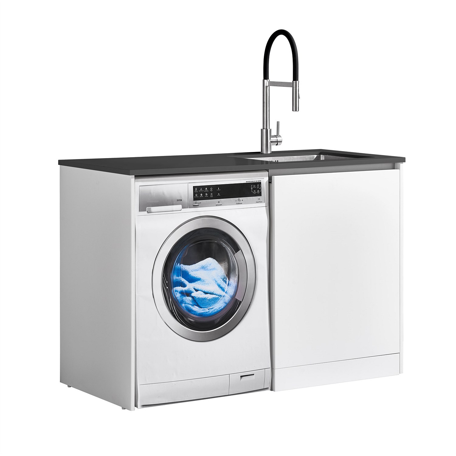 LeVivi Laundry Station 1300mm RH Door Charcoal Top White Cabinet