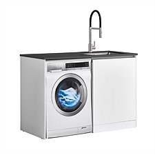 LeVivi Laundry Station: 1300mm, waterproof, engineered stone top, undermount sink, 5-year warranty. Stylish, functional, exclusive to Plumbing World.